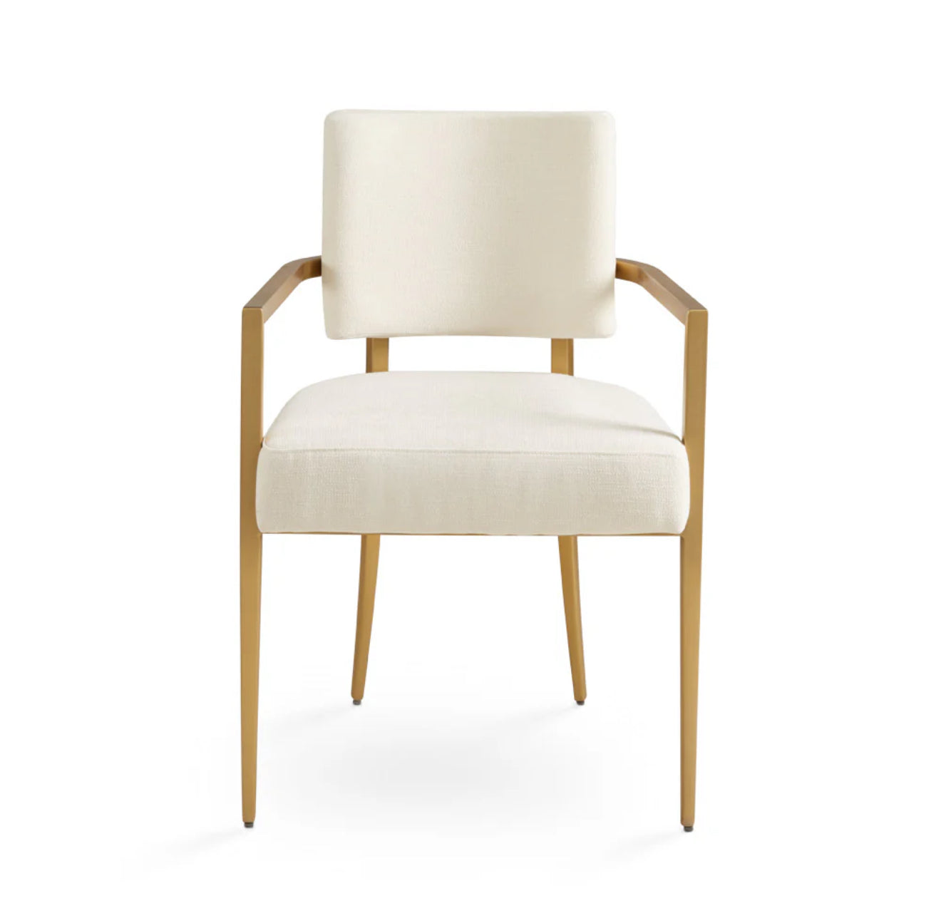 This set includes four Olivia Dining Side Chairs and two Olivia Arm Chairs. Each chair boasts a glamorous brushed gold frame and luxurious ivory linen upholstery, creating a chic and cohesive look. Perfect for entertaining and everyday dining, the Paolo Dining Room Set,
