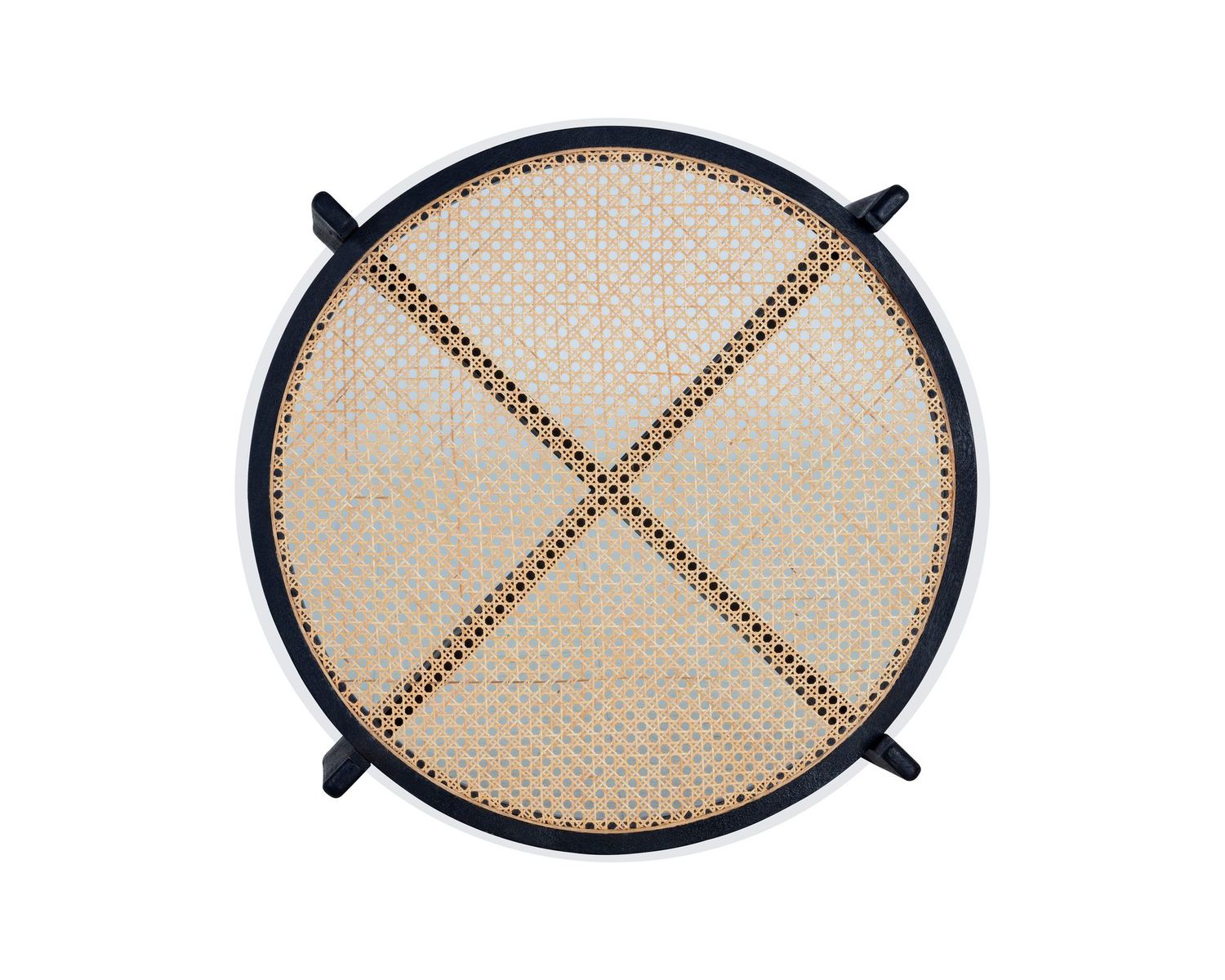 Inspired by global travels, this round coffee table combines old world influence with modern style. Features natural rattan top covered with clear glass and a sculpted black mango wood base. An intriguing design from all angles. Coordinating end table also available. Made in India. With refined craftsmanship, this design was brought to life by skilled local artisans. By nature, these materials develop unique imperfections such as fissures, markings and colour variations for a truly one-of-a-kind piece. Handle With Care: This design has been crafted with rattan. This artisan-crafted material features intricate weaving that results in natural variations where no two pieces are alike. Colour and texture differences are to be expected and embraced with this natural material. Due to the weaving process used, the fibres in this material may display shorter or longer lengths where the weaving ends. Visit our Product Care page for more information on how to ensure the lasting beauty of this piece.
