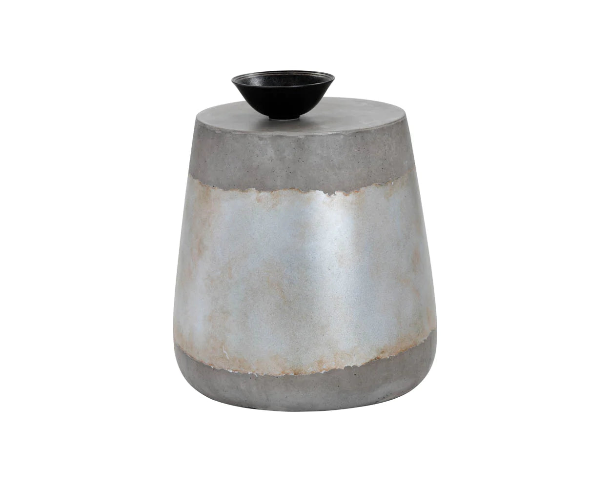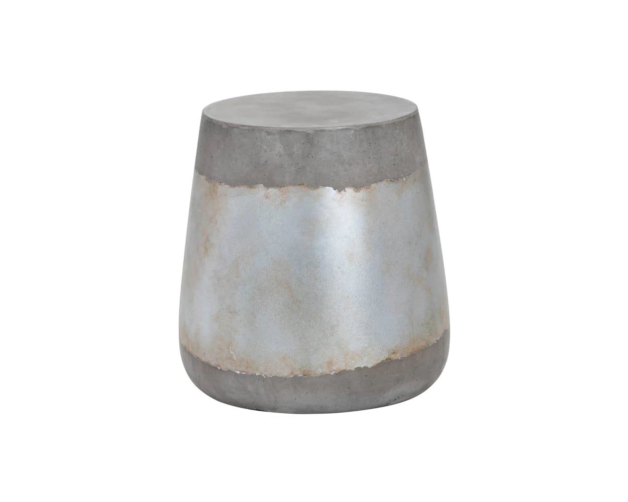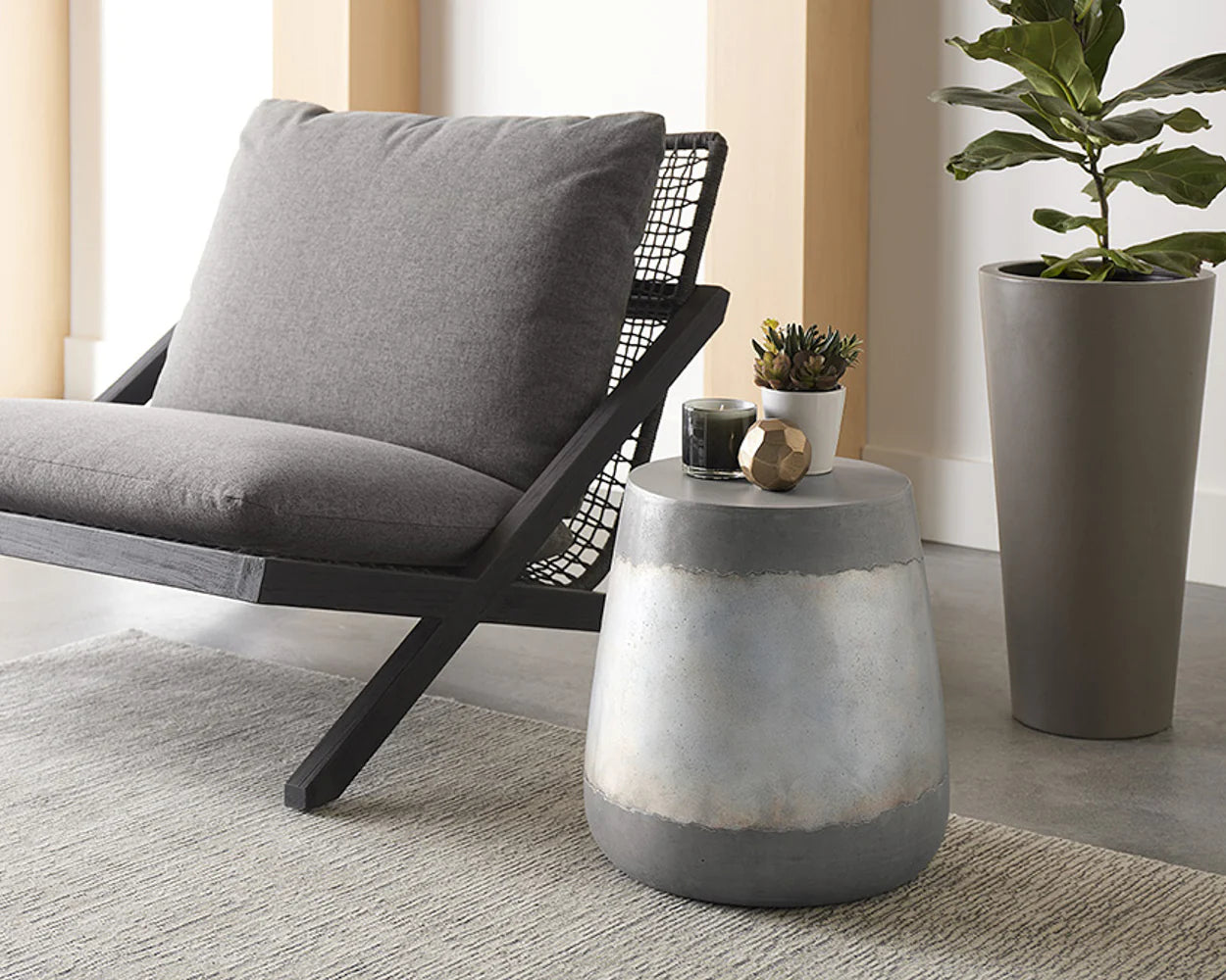 A beautiful side table with a stunning pop of metallic. The Aries is stocked in both gold and silver foil accents that pair perfectly with the industrial grey concrete. A versatile and functional piece suitable for indoor and covered outdoor spaces. Crafted from a natural concrete mix, each piece will look different, with variations of grey hues that will enhance over time.