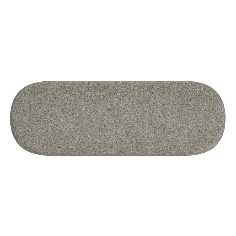 Cozy, modern, high end vibes are fully present with this beautiful, fully-upholstered bench. The stadium-shaped oval top sits regally on top of two double-pedestal column style legs, creating sturdy support. The soft boucle fabric is warm and inviting. A classic piece at the end of a bed, or a gorgeous statement maker in an entryway or hallway.