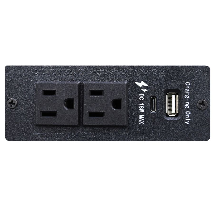- Built-in charging station with 1 USB-A port, 1 USB-C port, and 2 AC outlets