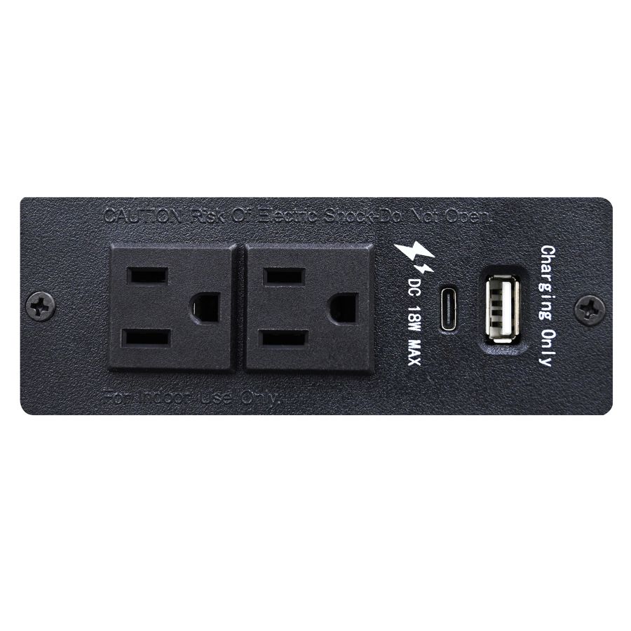 - Built-in charging station with 1 USB-A port, 1 USB-C port, and 2 AC outlets