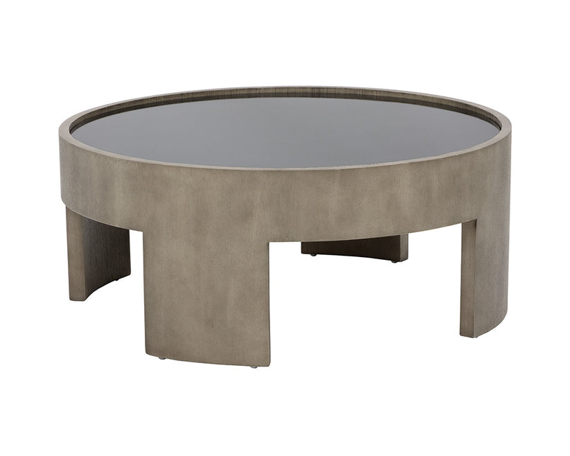 Bring sophistication to any living space with this large coffee table that is infused with a touch of contemporary style. Features an ash grey oak wood veneer frame with a smoked tempered glass top. Also available in a small size, and in a dark brown finish. As wood is an organic, porous material, these pieces will contain natural variation of texture and may also exhibit fine indentations and cracks. Wood pieces will also display a disparity of colour and grain, and visible knots and burls that add to the character of each piece.