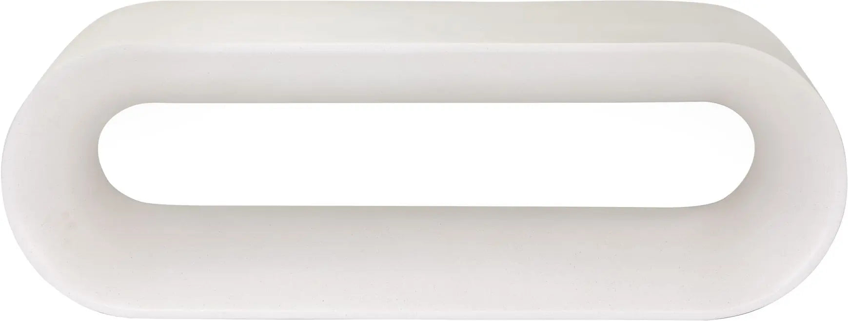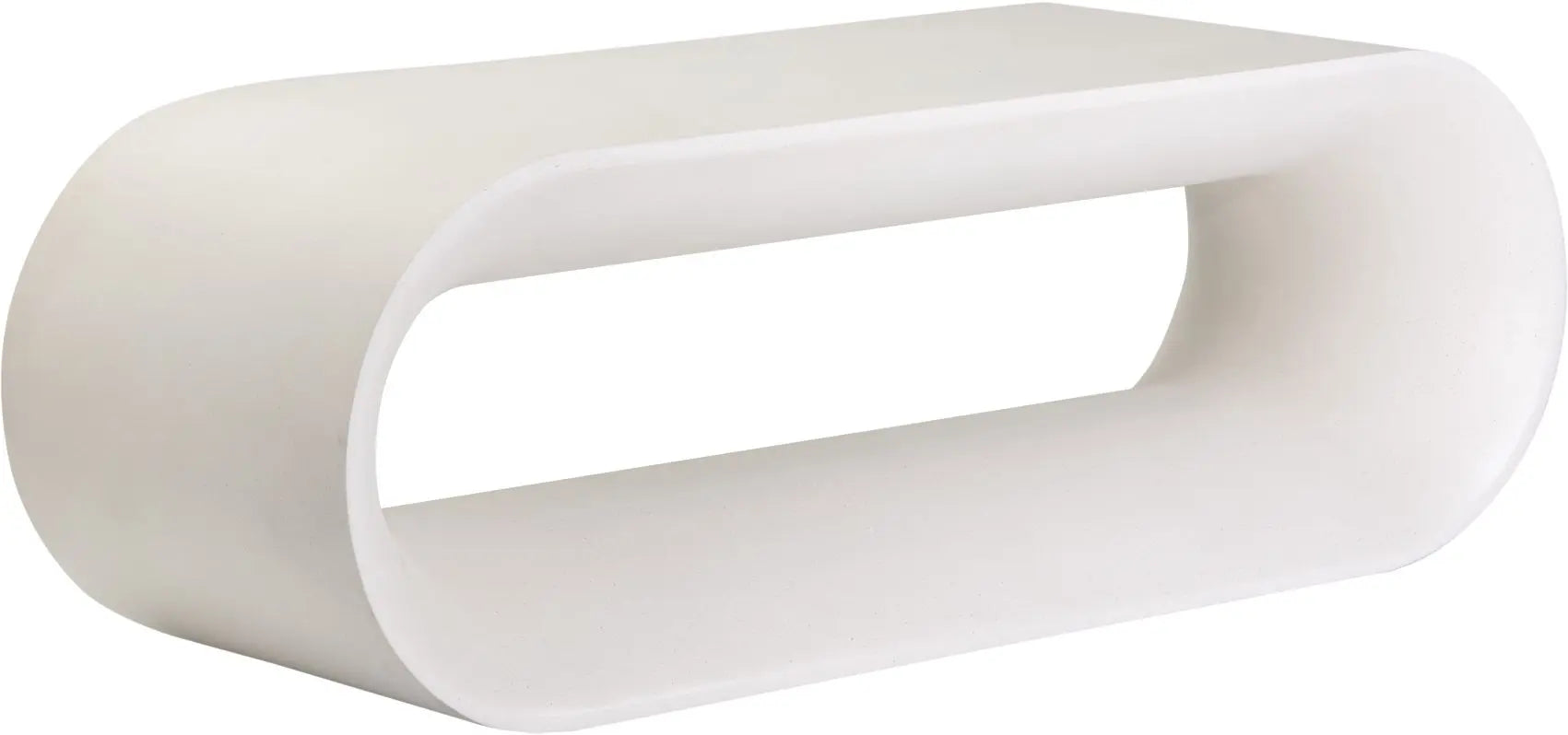 This contemporary white concrete bench combines unique form and function. Features a spacious bench with an open frame that can be used for storage. A versatile piece suitable for indoor and covered outdoor spaces. Crafted from a natural concrete mix, each piece will look different, with variations of white hues that will enhance over time.