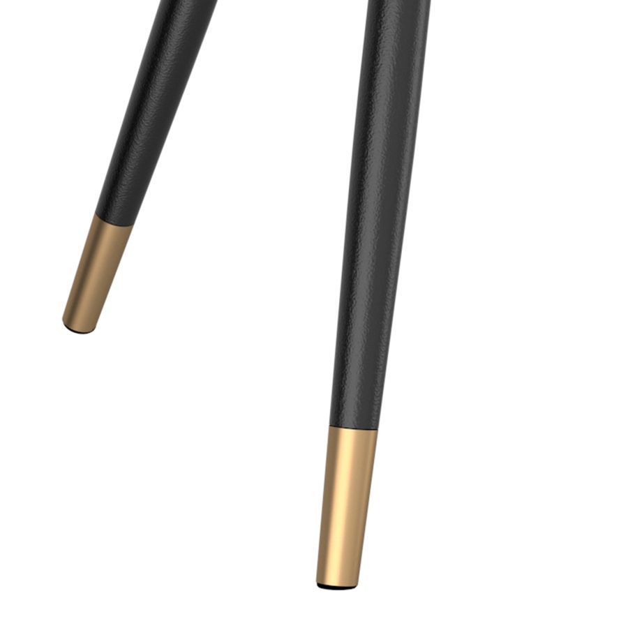 Clean, contemporary, marble-look accent table brings a true designer feel to your space. The A-line black metal legs have an aged gold accent that elevates this piece to couture status. So many uses for this versatile 2-tier piece - in a hallway, behind a sofa, or an accent piece in a bedroom.