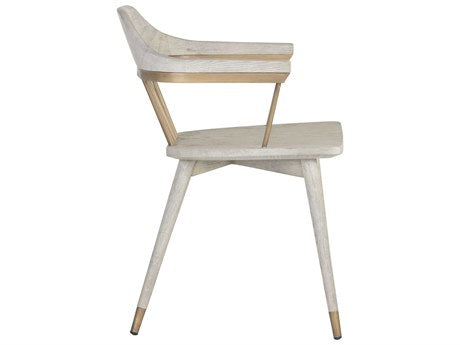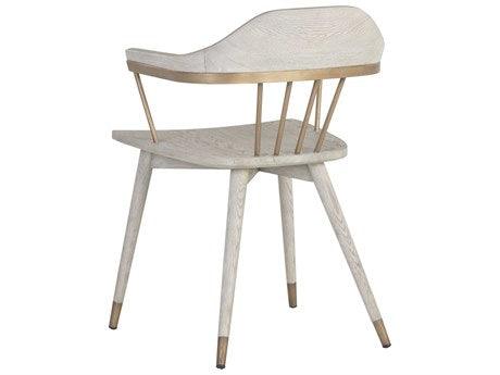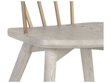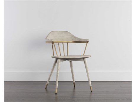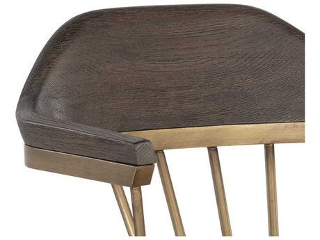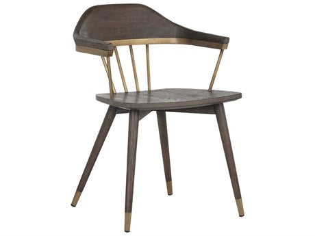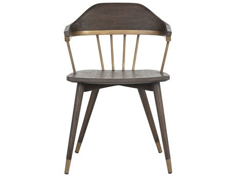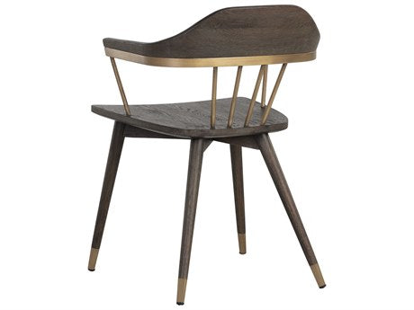 The classic elegance of this dining chair is guaranteed to make a statement in any dining room. The stylish antique brass spindles complement the matching metal caps of the chair legs. Completed with a dark brown solid oak wood base. Also available in grey solid oak wood.