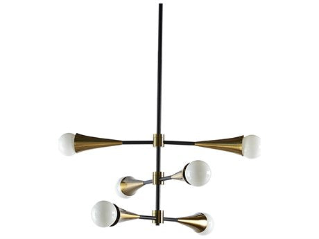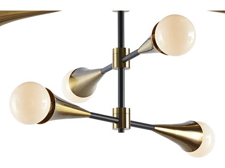 Create intrigue and illumination in living and dining spaces with this modern sputnik-style ceiling light. Features three adjustable arms with 360 degrees horizontal swivel. Stocked in brass and black iron finishes. Install multiples for a dramatic look. Requires 6 light bulbs and maximum 40 watts each.