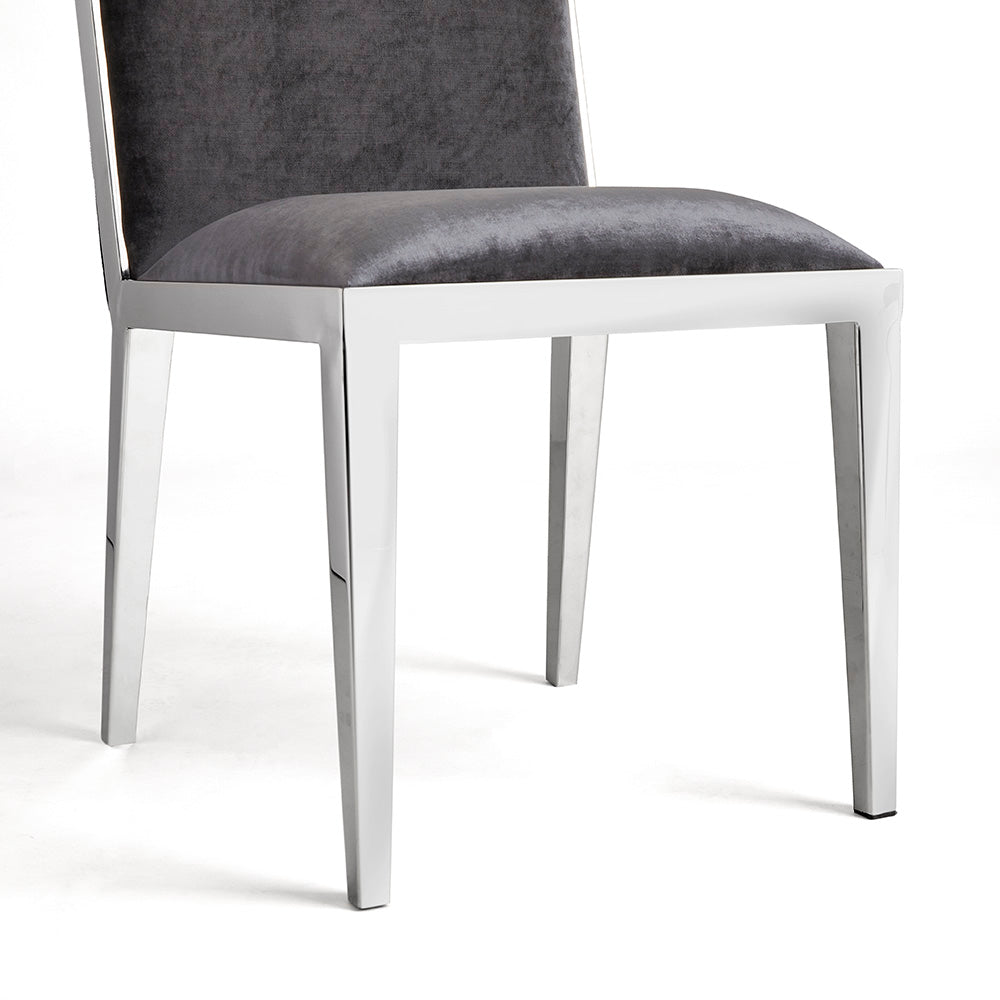 - Ideal for dining chairs options, Emario chair can also be used as accent chairs in any room. The steel frame provides sturdy support and complements the stunning velvet upholstery for a sleek, modern design.