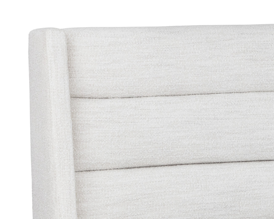 This upholstered bed features horizontal channel tufting for a modern look. Stocked in marble fabric. No box spring is required and slats are included.