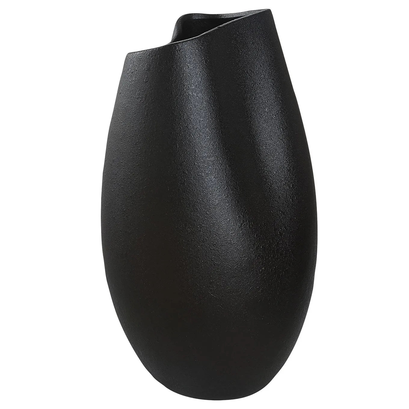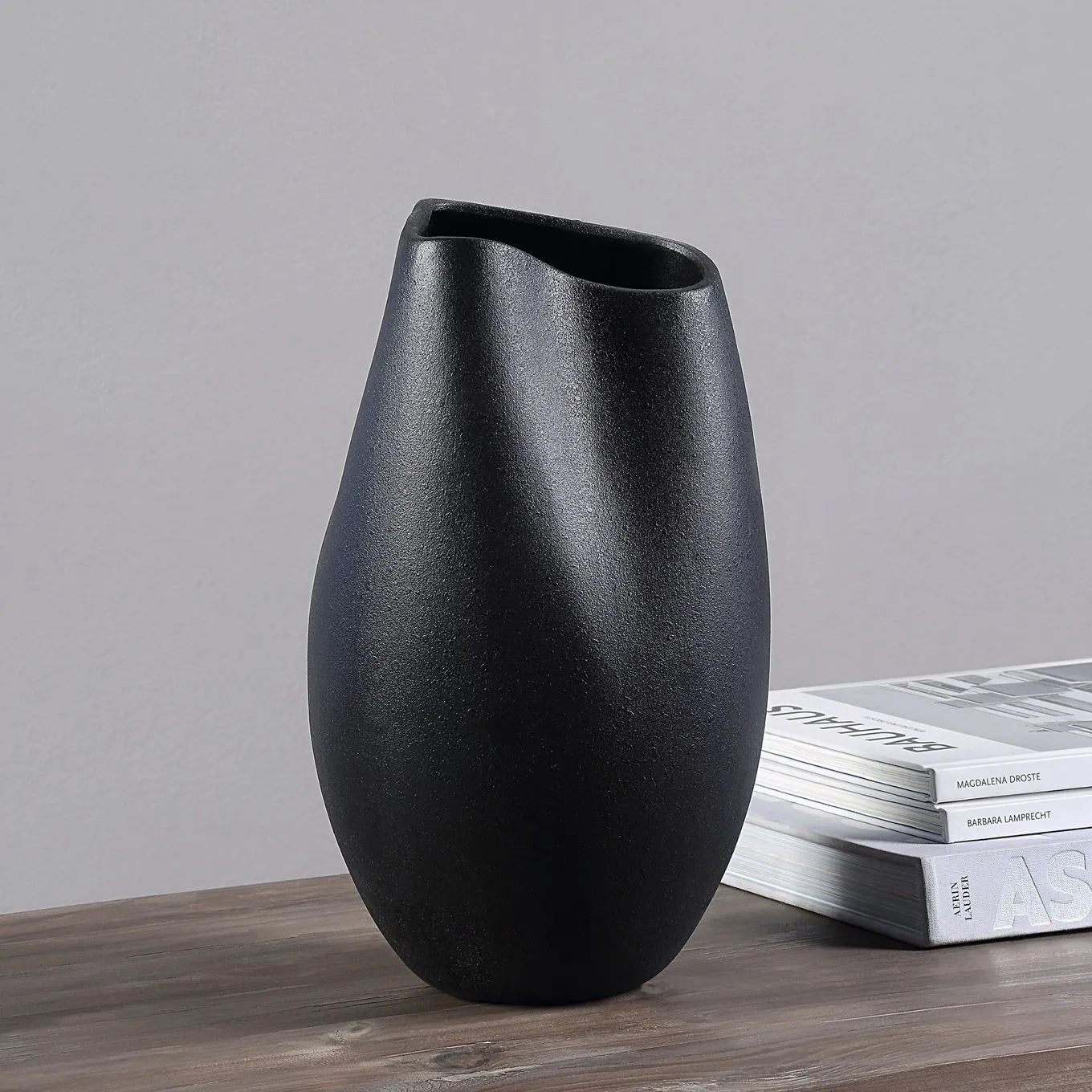 Modern design takes shape in this porcelain ceramic vase. Showcasing a sleek matte black finish, this vase brings a dramatic influence on the living room or dining room space. Clients will find the styling options are endless with this ceramic vase design, given that it stands out solo.
