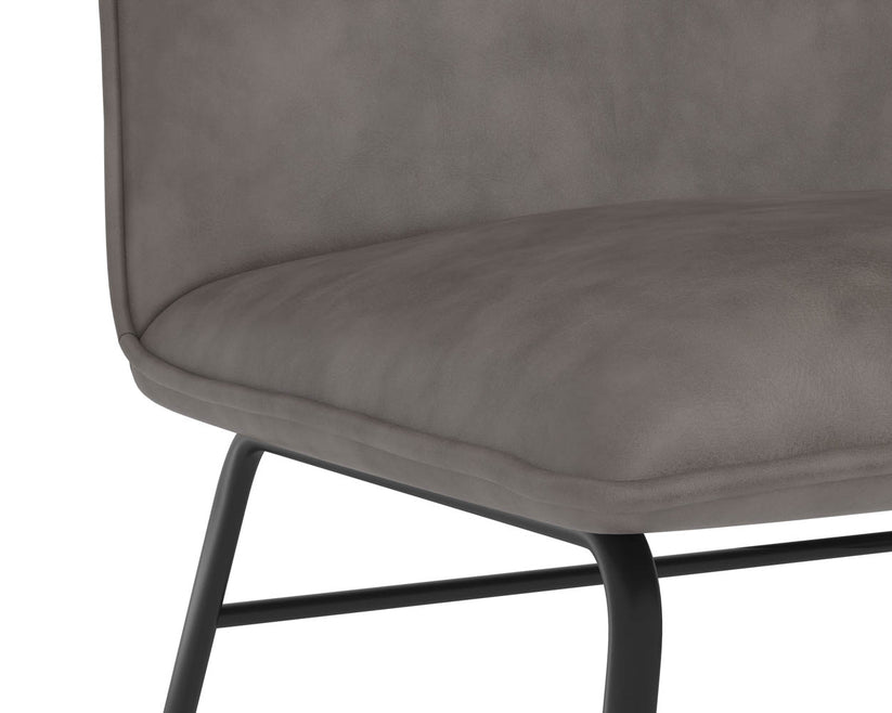 With a stylish, minimalist design, this mid-century modern banquette is a perfect addition to any space. Stocked in dawn grey faux leather and completed with a matte black powder coated metal base. Also available in hazelnut faux leather. Handle With Care: This design has been crafted with faux leather. Faux leather is manufactured to reflect the natural characteristics of leather; as such, colour variations, markings, wrinkles, grooves, and light scratches are appreciated characteristics. No two pieces will be alike. Visit our Product Care page for more information on how to ensure the lasting beauty of this piece.
