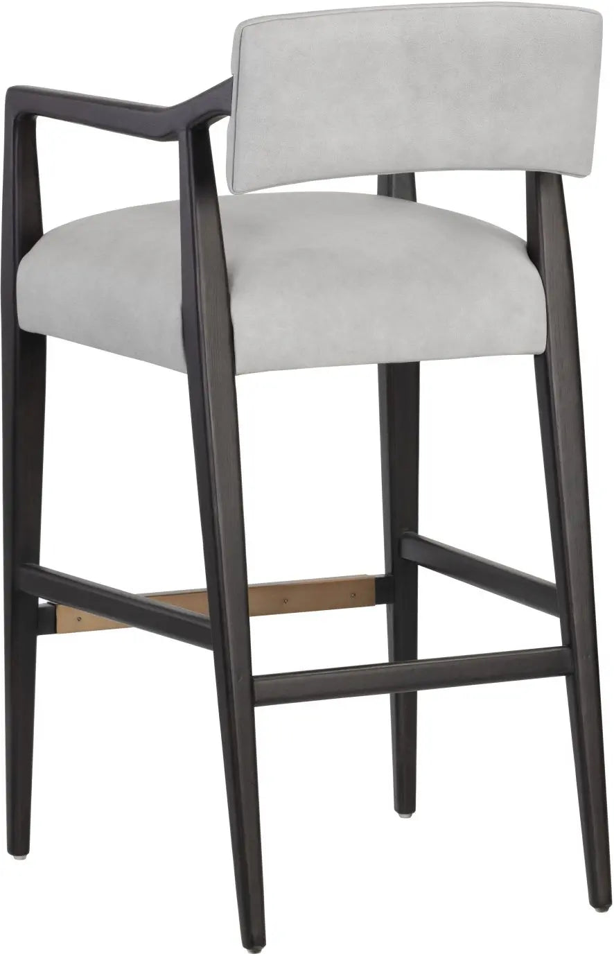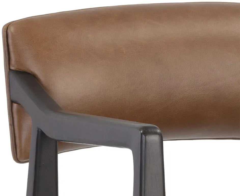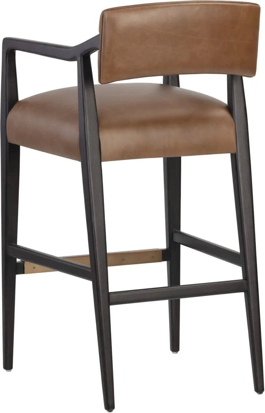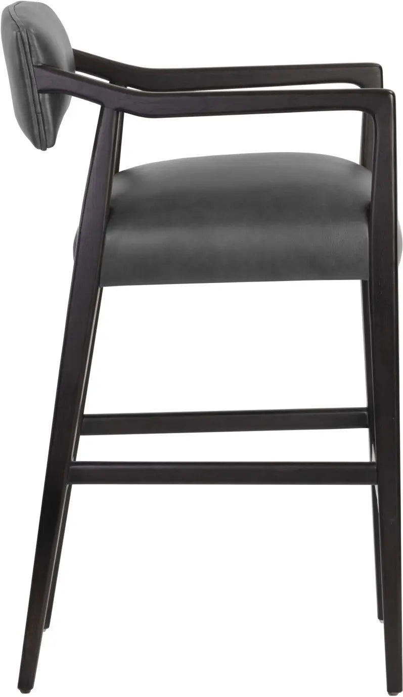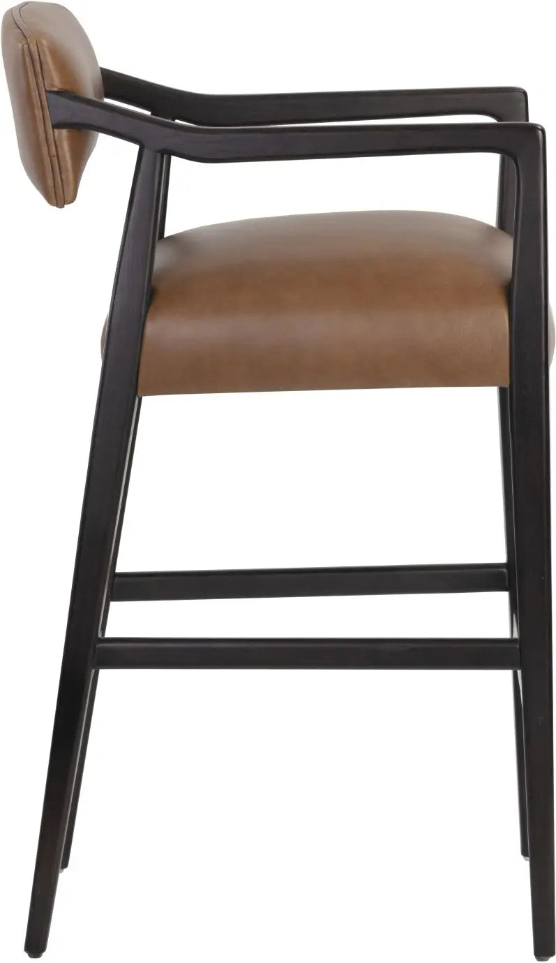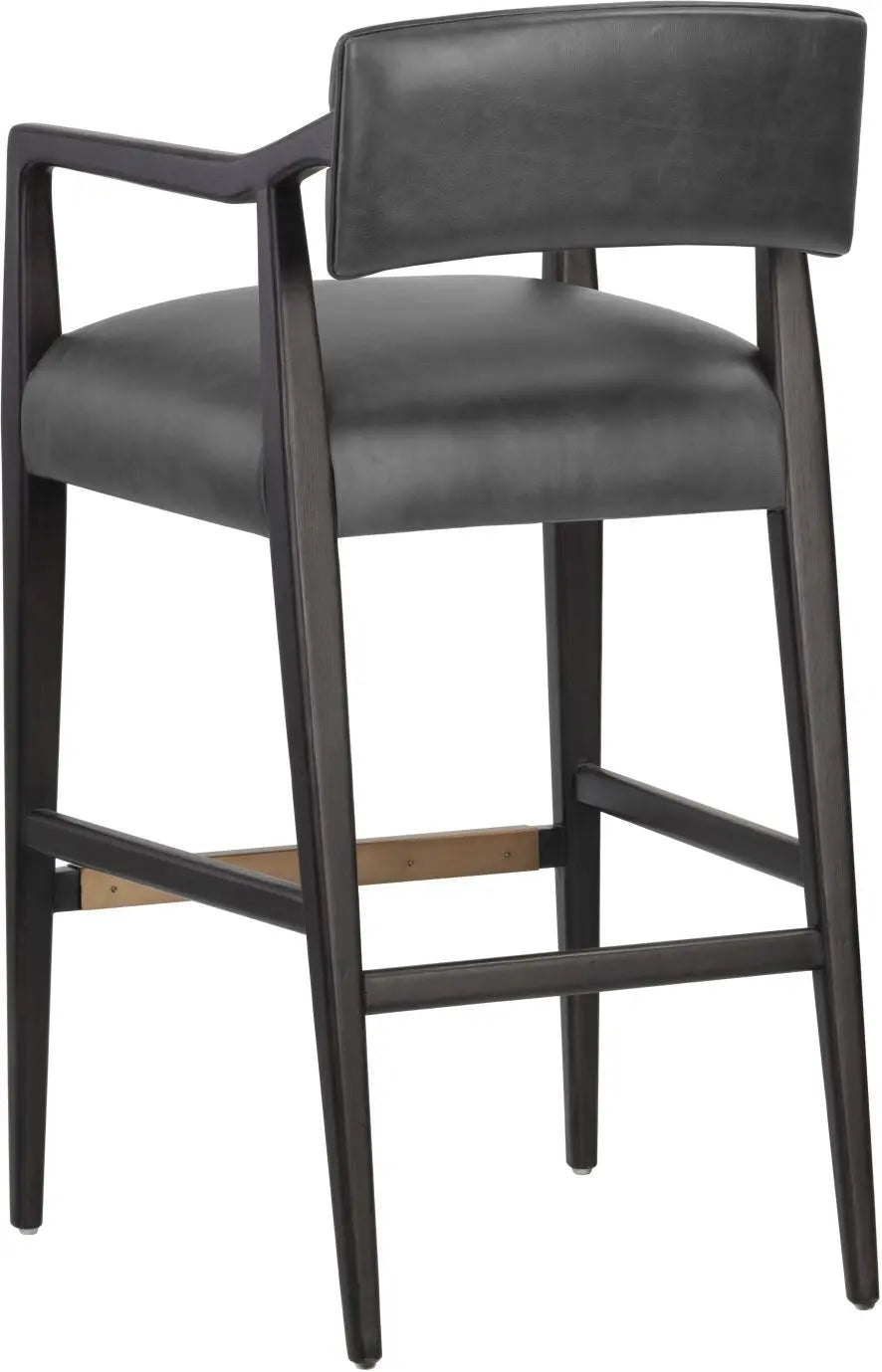 Design an inviting dining space with the mid-century inspired Keagan barstool. The exposed dark brown oak wood frame offers an airy element while paired with saloon light grey, brentwood charcoal and shalimar tobacco genuine leather. Handle with Care: This design has been crafted with 100% genuine leather. Leather is a natural material; as such, colour variations, markings, wrinkles, grooves and light scratches are acceptable and appreciated characteristics. No two pieces are alike. Visit our Product Care page for more information on how to ensure the lasting beauty of this piece.