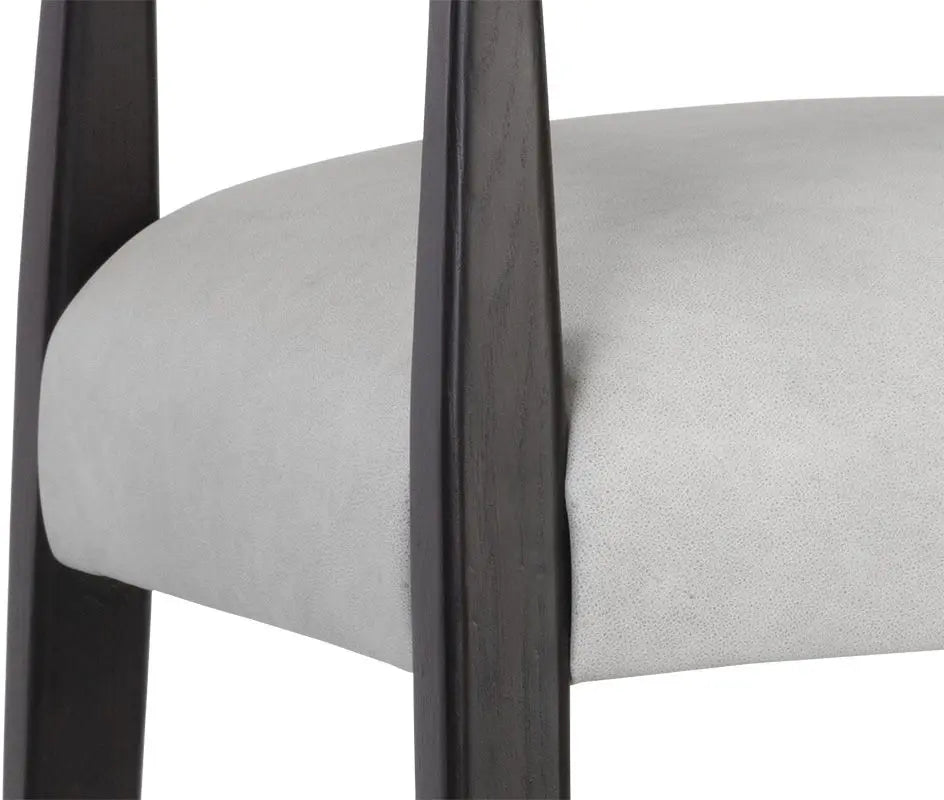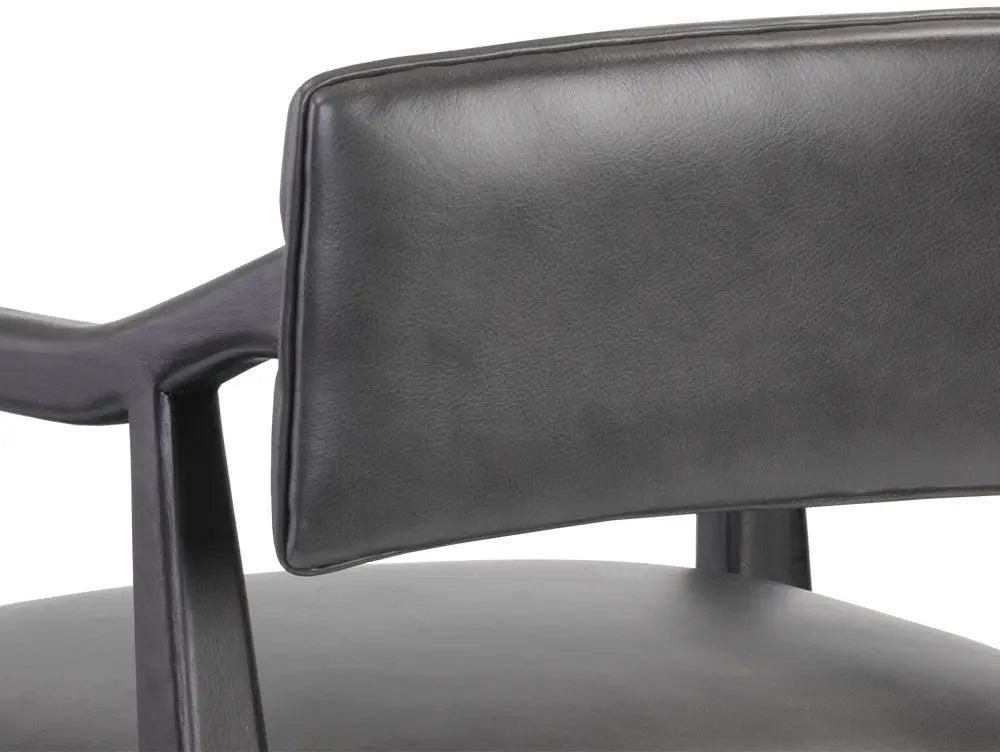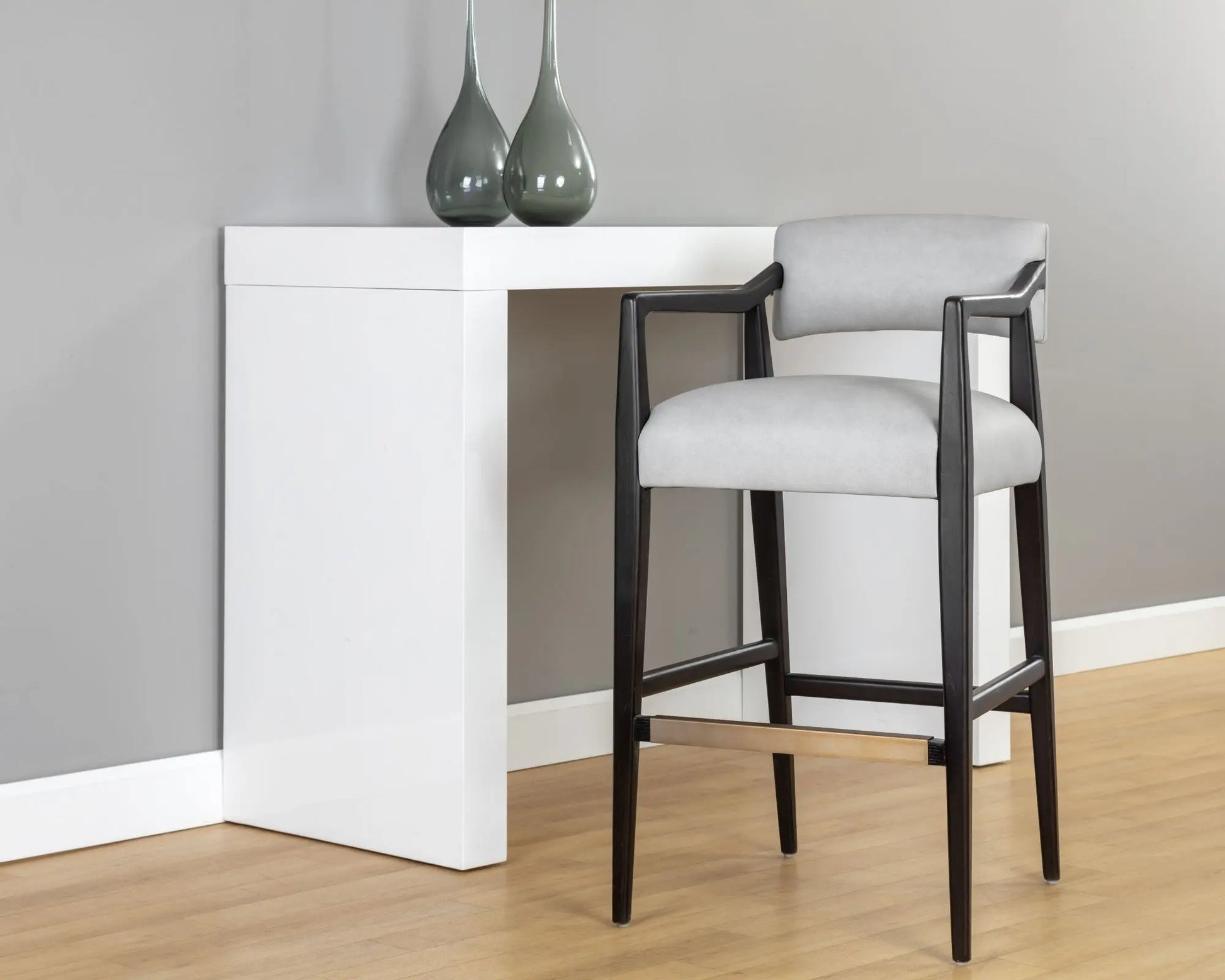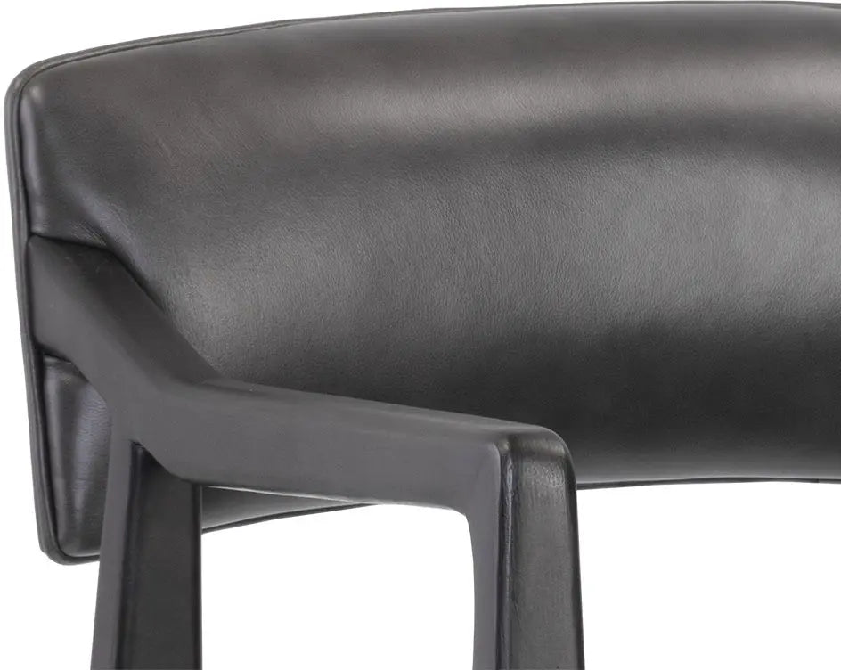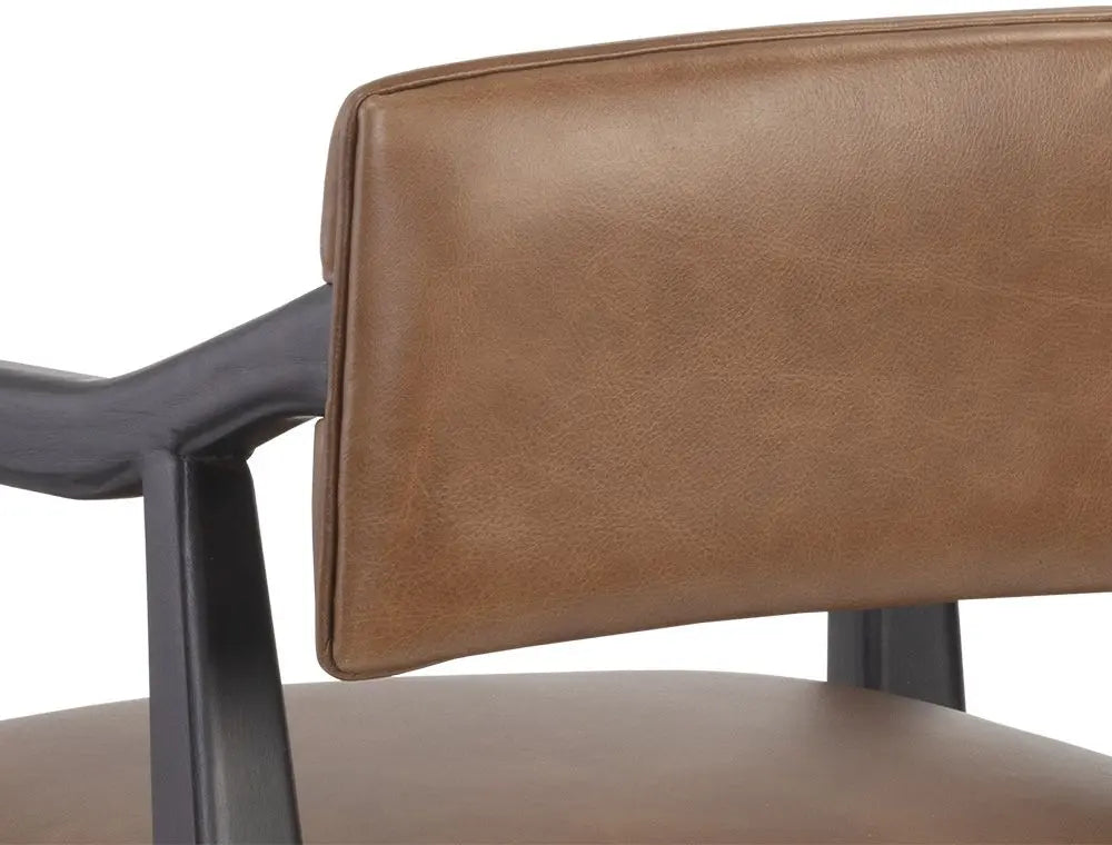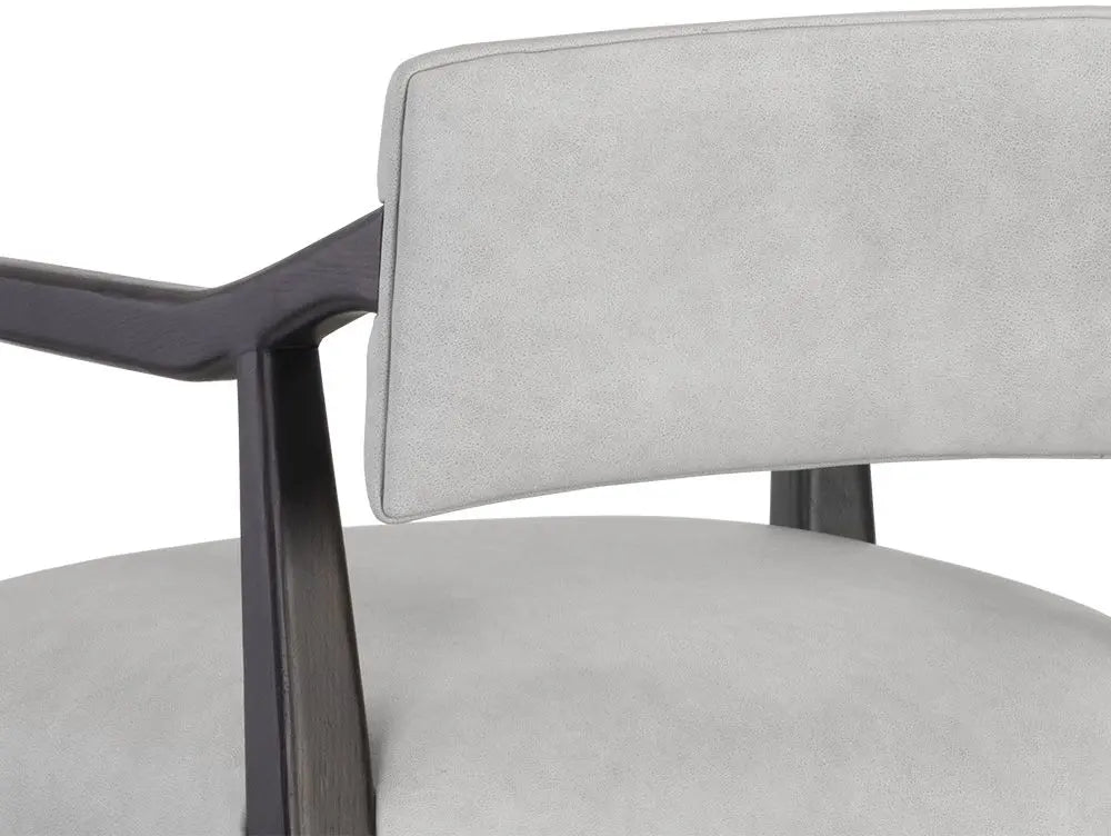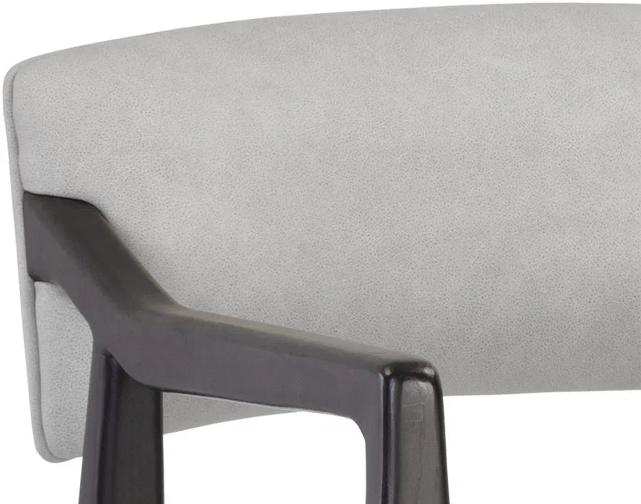 Design an inviting dining space with the mid-century inspired Keagan barstool. The exposed dark brown oak wood frame offers an airy element while paired with saloon light grey, brentwood charcoal and shalimar tobacco genuine leather. Handle with Care: This design has been crafted with 100% genuine leather. Leather is a natural material; as such, colour variations, markings, wrinkles, grooves and light scratches are acceptable and appreciated characteristics. No two pieces are alike. Visit our Product Care page for more information on how to ensure the lasting beauty of this piece.