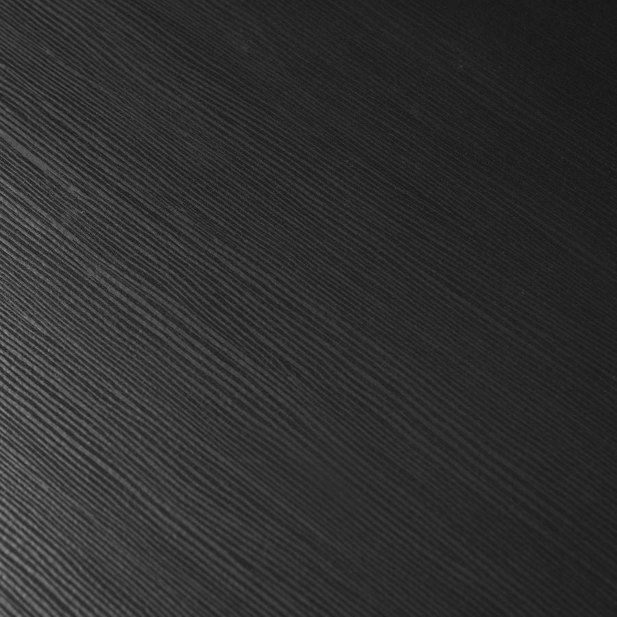 - Solid engineered wood table top with laminated veneer in a black wood grain