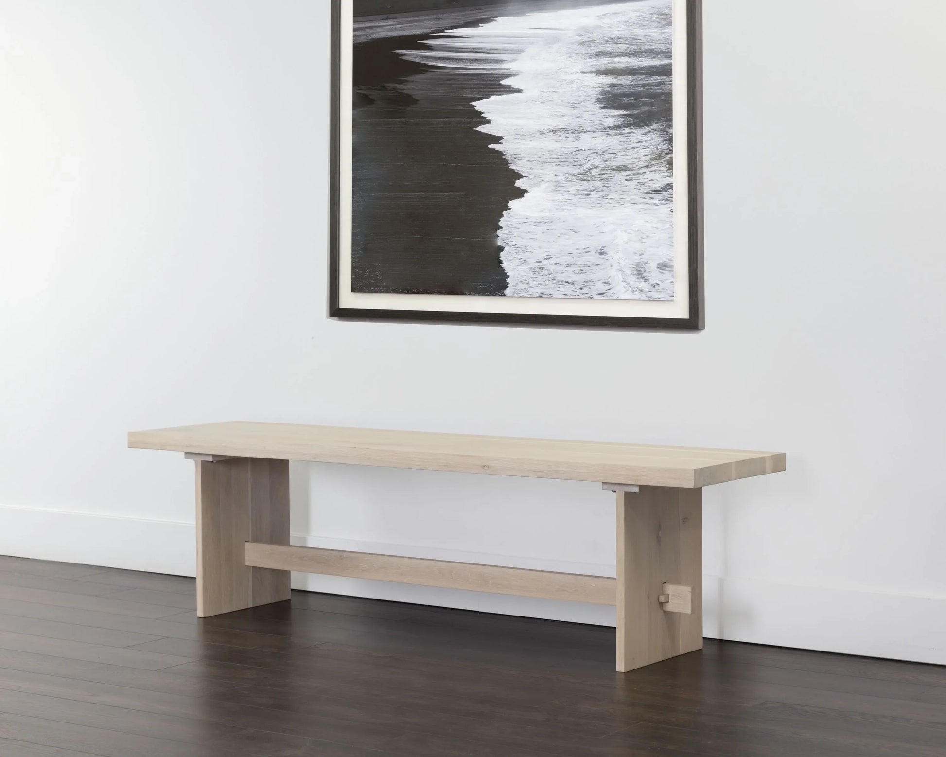 Designed with Scandinavian influence, this mid-century modern bench is a great addition to any space. Crafted from grey mango wood. Also available in light oak wood. As wood is an organic, porous material, these pieces will contain natural variation of texture and may also exhibit fine indentations and cracks. Wood pieces will also display a disparity of colour and grain, and visible knots and burls that add to the character of each piece.