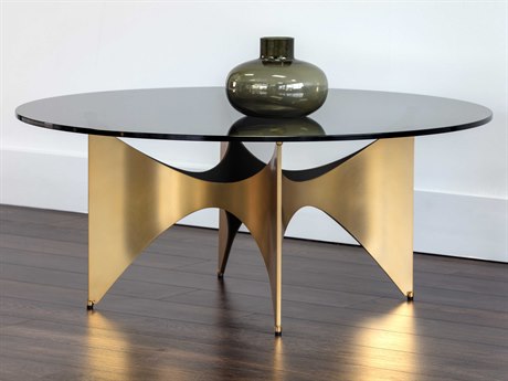 A glamorous coffee table from our Ikon collection. Features a stainless steel base with a brushed antique gold finish and a smoked grey glass top. Can be paired with coordinating console and end tables.