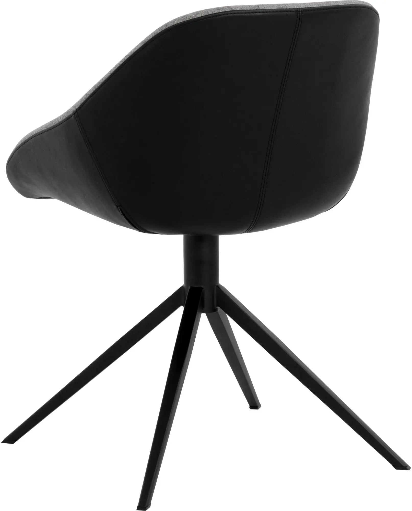 This swivel dining chair exudes masculine charm. Features a sculpted two toned seat in November grey fabric with a cinnamon brown faux leather exterior. Tapered black steel legs create a bright and airy look. Suitable for various dining, kitchen and bar spaces of all sizes. Handle With Care: This design has been crafted with faux leather. Faux leather is manufactured to reflect the natural characteristics of leather; as such, colour variations, markings, wrinkles, grooves, and light scratches are appreciated characteristics. No two pieces will be alike. Visit our Product Care page for more information on how to ensure the lasting beauty of this piece.
