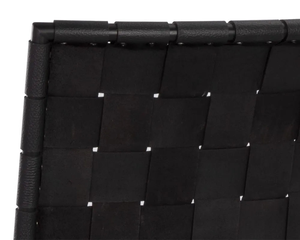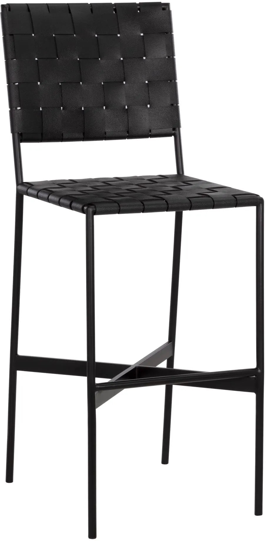 This elevated barstool offers comfortable seating and unique style. Features a weaved seat in black suede leather and finished with a black iron frame. Also available in light tan suede leather. Handle with Care: This design has been crafted with 100% leather. Leather is a natural material; as such, colour variations, markings, wrinkles, grooves and light scratches are acceptable and appreciated characteristics. No two pieces are alike. Visit our Product Care page for more information on how to ensure the lasting beauty of this piece.