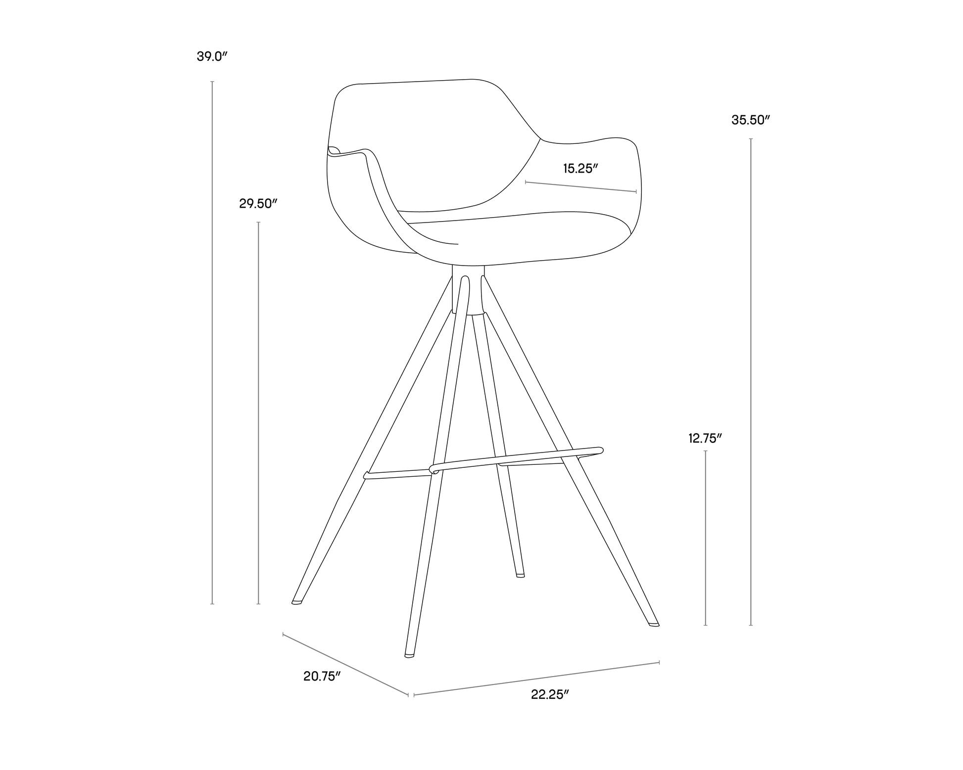 This comfortable swivel barstool is a mix of masculine, modern and urban design. Stocked in town grey faux leather with black powder-coated iron legs and a footrest. Features a 360 degree swivel range. Suitable for residential and contract environments and various dining, kitchen and bar spaces of all sizes. Handle With Care: This design has been crafted with faux leather. Faux leather is manufactured to reflect the natural characteristics of leather; as such, colour variations, markings, wrinkles, grooves, and light scratches are appreciated characteristics. No two pieces will be alike. Visit our Product Care page for more information on how to ensure the lasting beauty of this piece.