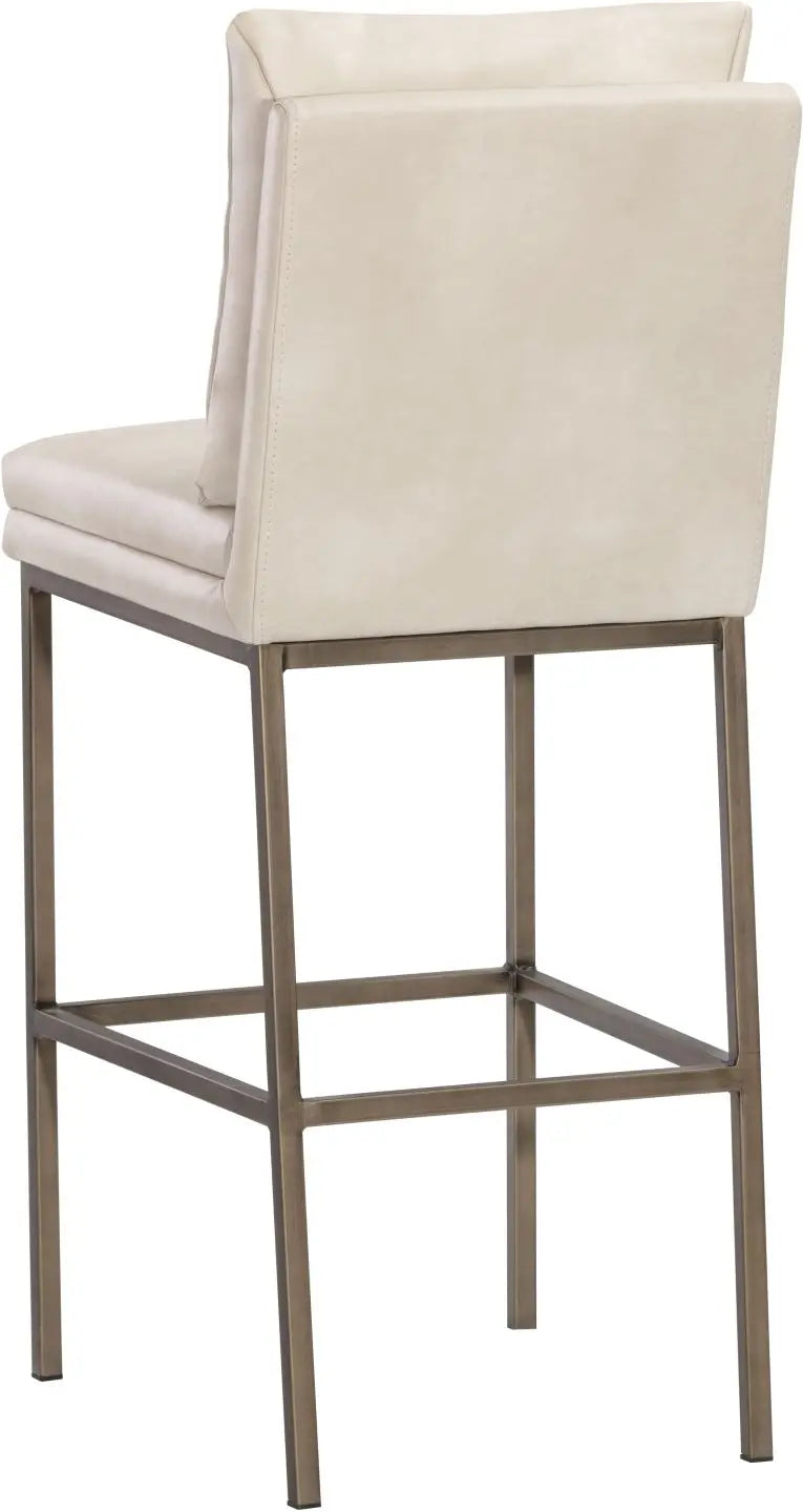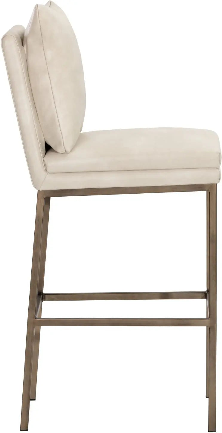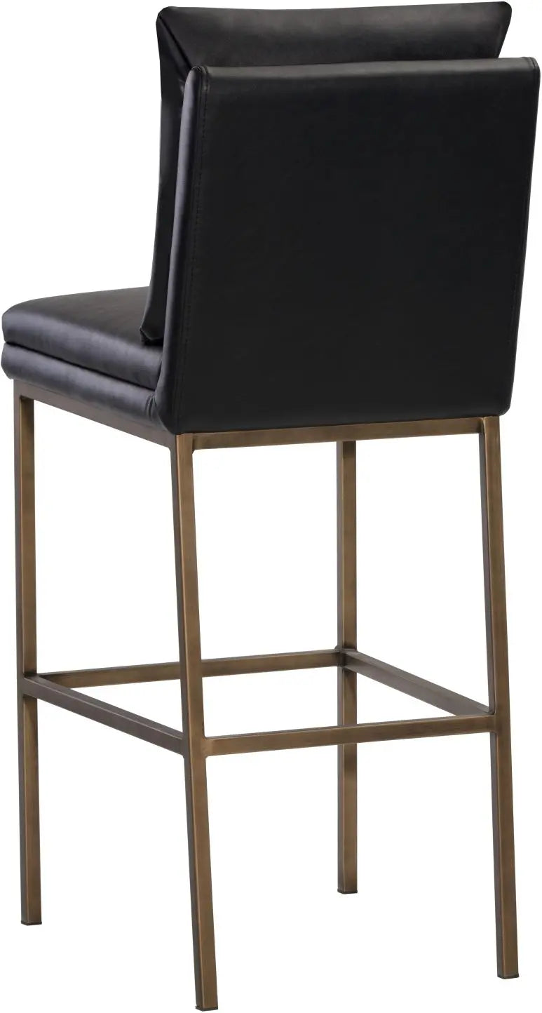 This barstool features a clean and comfortable design. Designed with a cushion-like seat back in bravo black faux leather with antique brass iron legs. Also available in bravo cream faux leather. Suitable for various dining, kitchen and bar spaces of all sizes. Handle With Care: This design has been crafted with faux leather. Faux leather is manufactured to reflect the natural characteristics of leather; as such, colour variations, markings, wrinkles, grooves, and light scratches are appreciated characteristics. No two pieces will be alike. Visit our Product Care page for more information on how to ensure the lasting beauty of this piece.