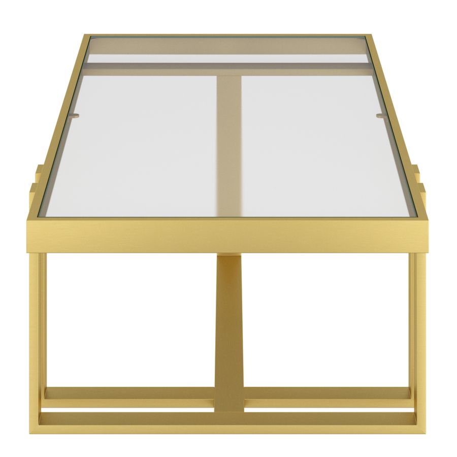 Contemporary, clean-line design for the perfect airy feel in your living room. The brushed gold finish creates a high end feel, topped perfectly with the clear tempered glass. Great in a formal living space. Coordinating pieces will bring the elements of the room together, or mix with other decor pieces to create your own look.