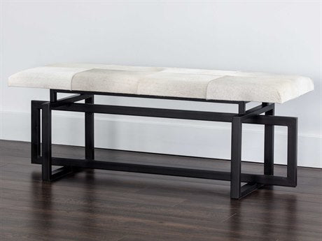 This stunning bench will bring style and comfort to transitional spaces. Features a hand-stitched genuine brown cowhide seat with a sleek black iron frame. Also available in grey, along with a coordinating ottoman. As cowhide is a natural material, organic markings on the animal may still be visible and there may be apparent differences in hair length, colour, and pattern. No two pieces are alike and images on site may not capture these qualities precisely. Made in India. With refined craftsmanship, this design was brought to life by skilled local artisans. By nature, these materials develop unique imperfections such as fissures, markings and colour variations for a truly one-of-a-kind piece.
