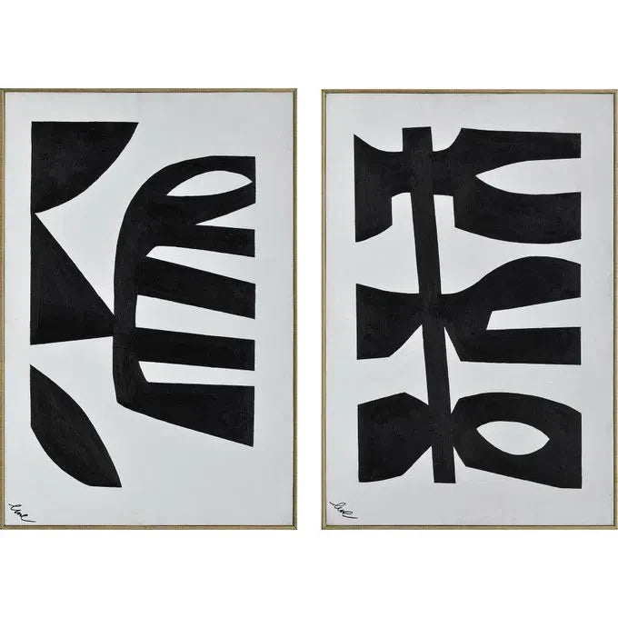 This set of graphic paintings on cotton canvas add a bold touch to the mid-century modern living space. With strong black lines creating shapes akin to leaves on a vine, their vivid designs have a familiar quality. Hang them together or separately within the interior, for a dose of personality.