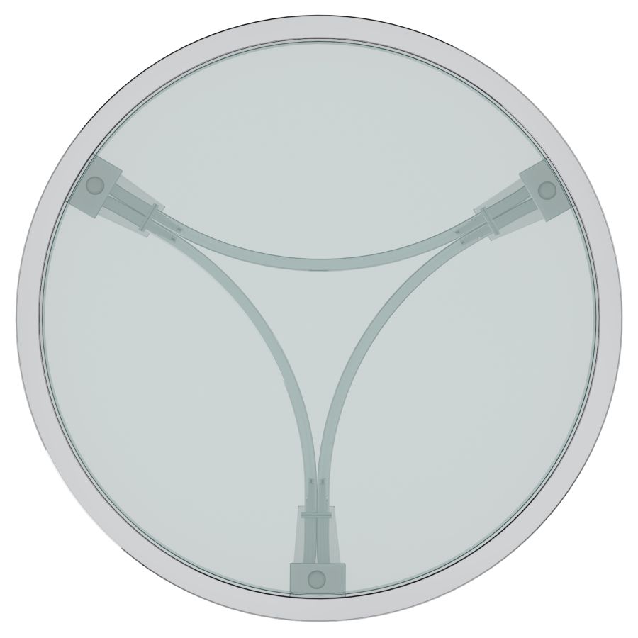 Stylish round chrome-finished table. Sturdy, thick frame has beautifully overlapping curved stretchers. Tempered clear glass is a classy compliment to the chrome. The airy feel of this table is perfect for a casual or formal space. Pair this with the matching coffee table or try placing it in a hallway or bedside.