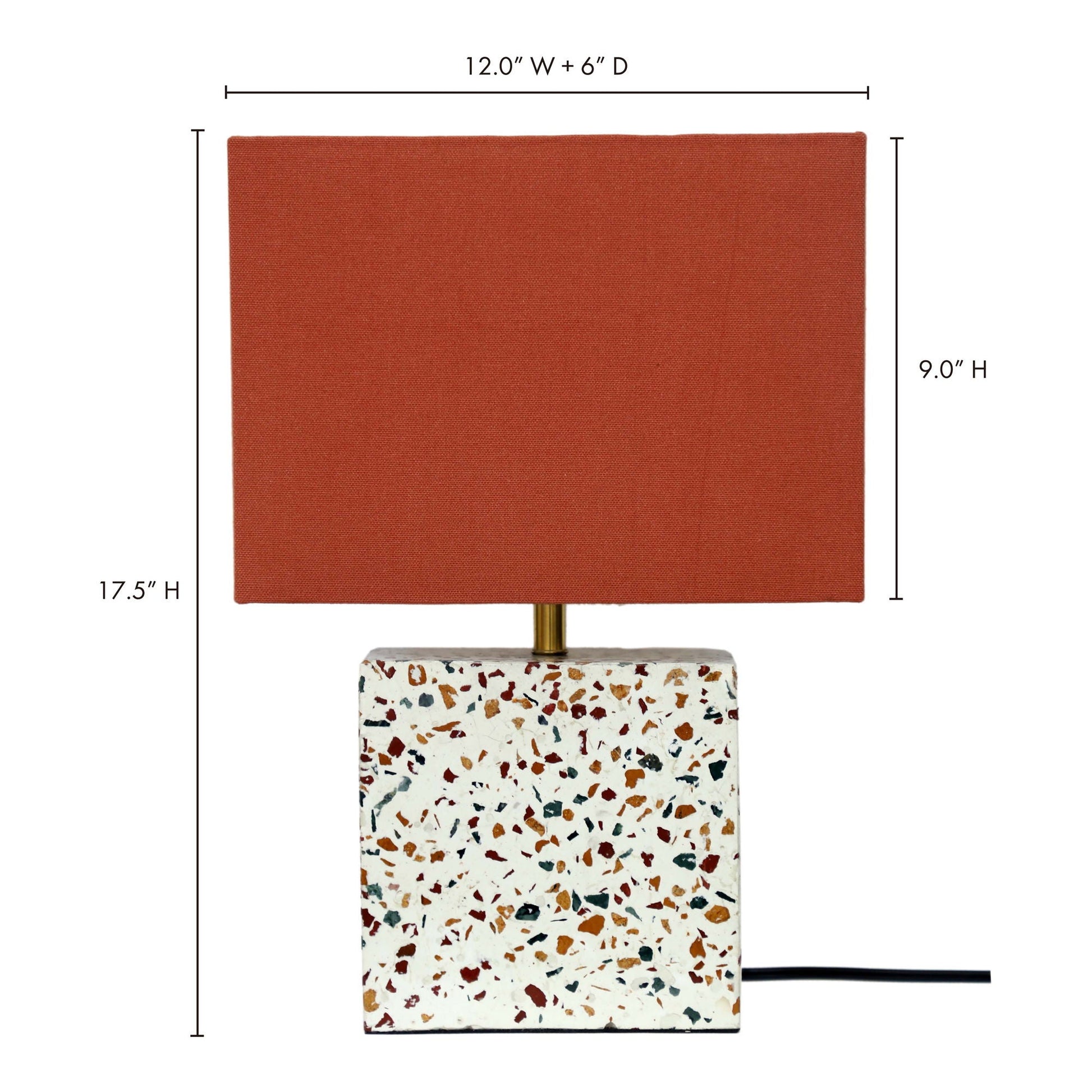 Terrazzo marble creates a beautiful, mosaic pattern on this stylish square table lamp. A hand-loomed cotton shade is the finishing touch.