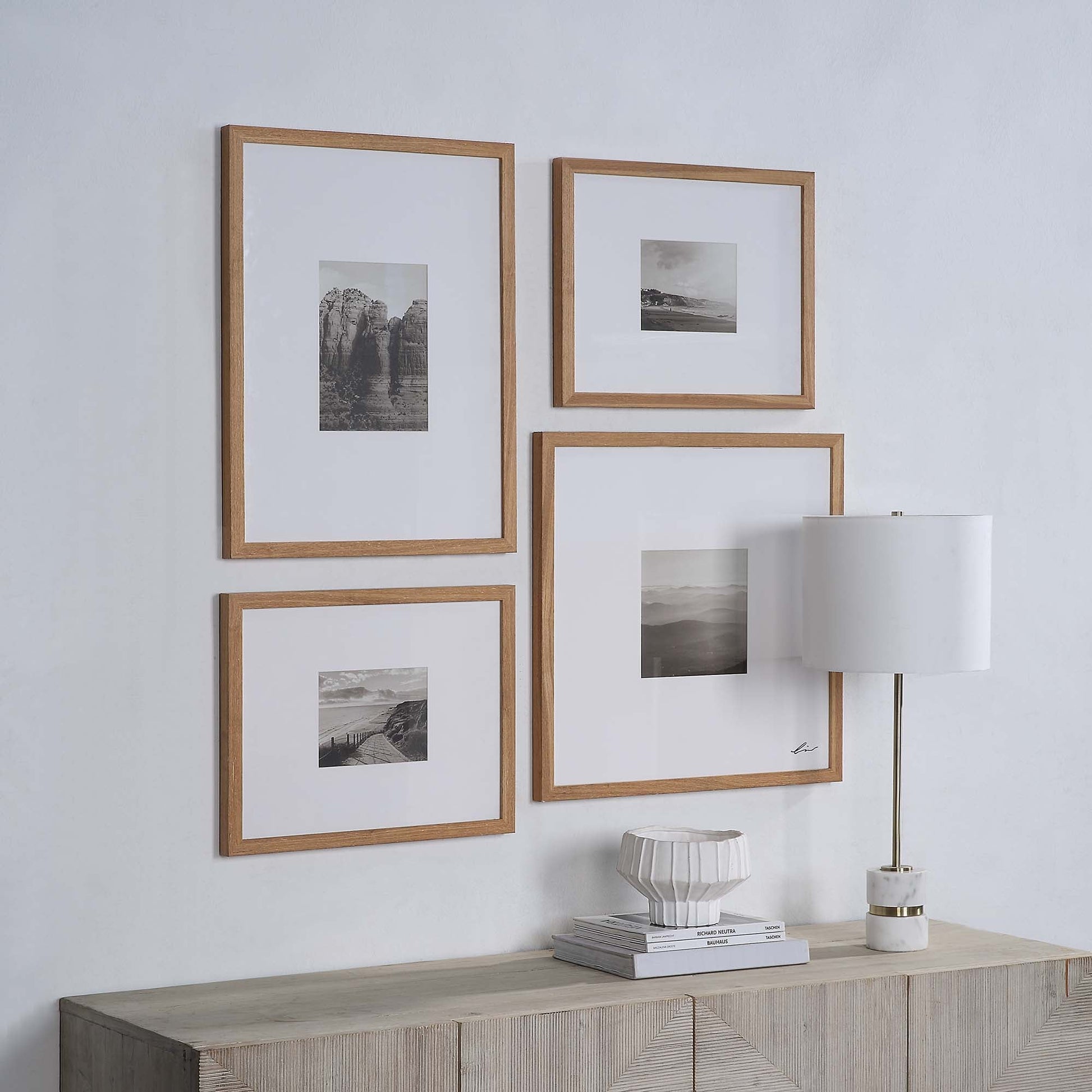 The simple and serene beauty of scenes in nature is captured within these four framed photograph wall art designs. With the design and frame showcasing contrast of warm and cool tones, these pieces can fit within organic-inspired contemporary and classic interiors alike. When arranged in a grid-like fashion, vertically or horizontally, the designs bring a new story to the space.