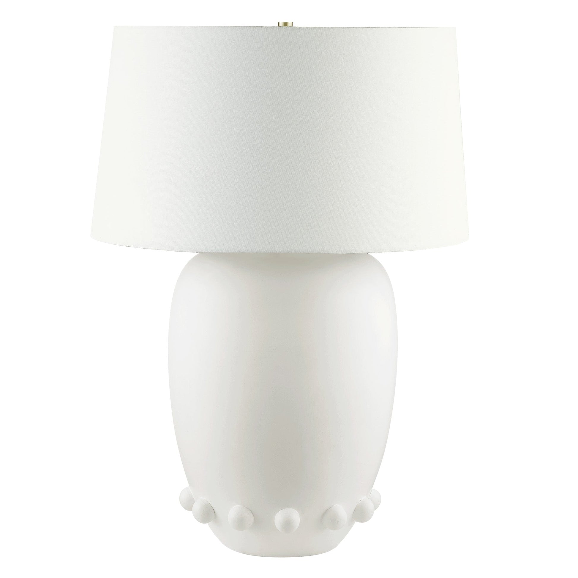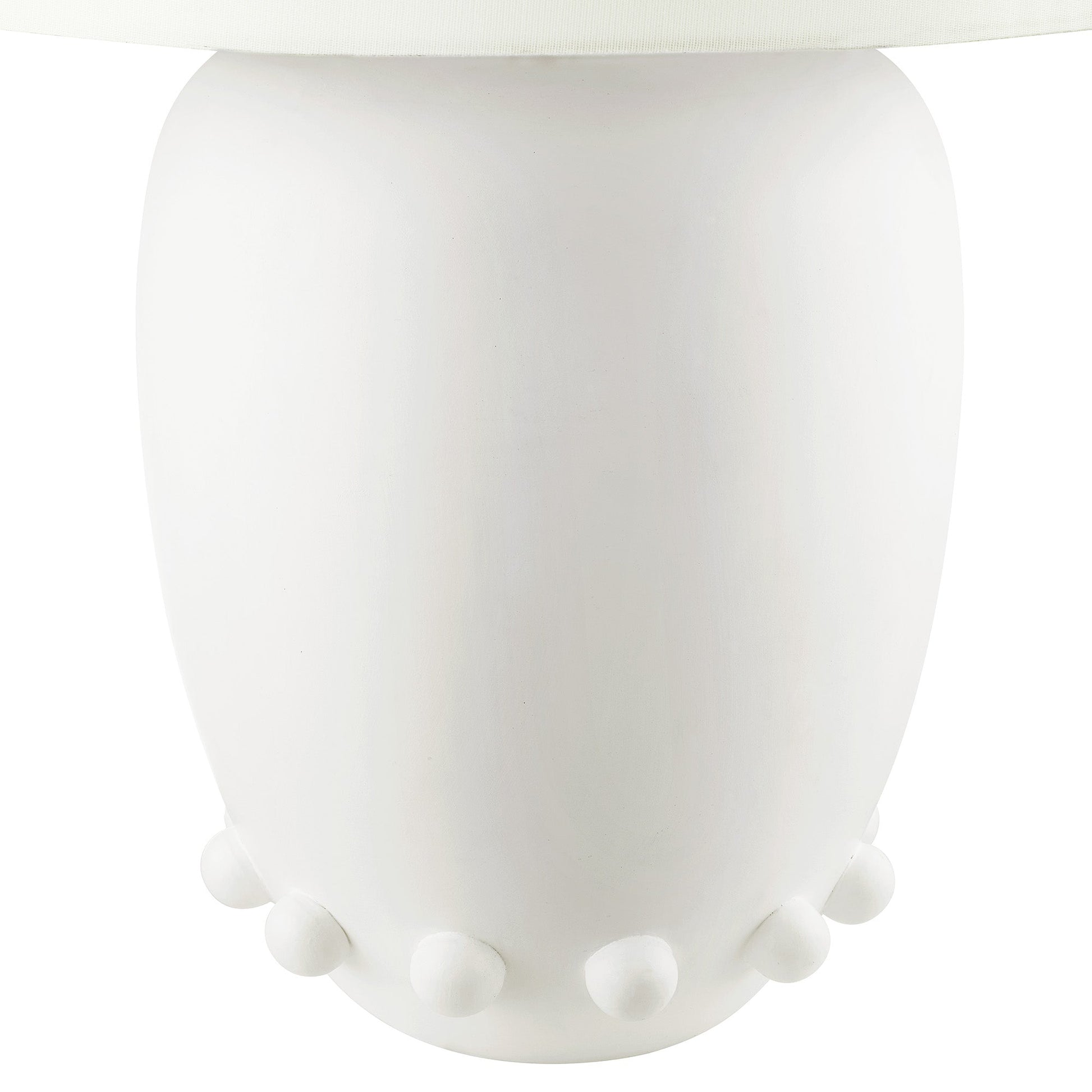 At once stylish and classic, this table table lamp's off-white hue makes it not only versatile for arrangement but aesthetically pleasing to the eyes. The unique construction of the base of this table table lamp invokes a sense of character that is optimally balanced by a crisp white shade and otherwise smooth structure. Set in a living room or on bedroom bedside tables, this piece completes the welcoming atmosphere of the space.
