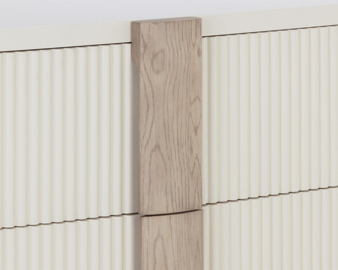 Spacious and stylish, the Venetta Dresser will elevate any bedroom space. Smooth light oak wood handles beautifully complement the cream base and reeded drawers. As wood is an organic, porous material, these pieces will contain natural variation of texture and may also exhibit fine indentations and cracks. Wood pieces will also display a disparity of colour and grain, and visible knots and burls that add to the character of each piece.