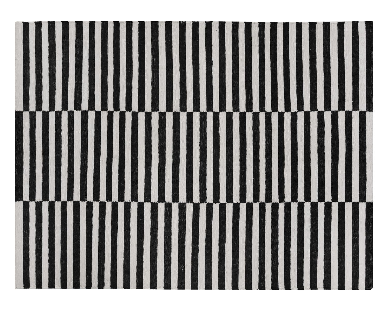With a rectangular black and ivory pattern, this hand-woven rug is a great addition to mid-century modern spaces. It is made from PET yarn by skilled local artisans and can be placed in both indoor and outdoor spaces. Available in three sizes. PET yarn is a sustainable material made from recycled water bottles. It is naturally resistant to fading, mold and mildew. Variations in colour, design and size are to be expected and embraced in each rug due to the distinctive weaving process followed by each artisan, resulting in a truly one-of-a-kind piece.